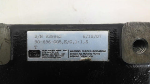 Von Ruben 90-696-005 Inline Gear Reducer Ratio 1:1