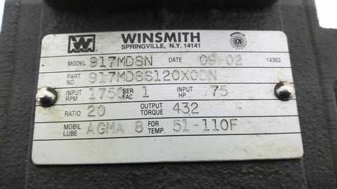 Winsmith 917MDSN 20:1 Ratio .75 Input HP Gearbox