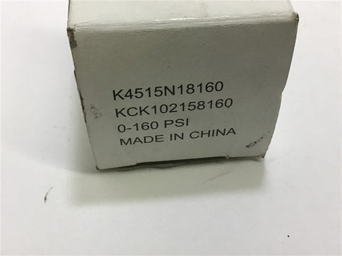 K4515N18160 Pressure Gauge KCK102158160 0-160 PSI Return Policy Returns accepted within 30 days. Items sold as is cannot be returned, unless description is in error. Buyer pays return freight. Shipping Policy We ship almost all items with 1 business day of cleared payment. We ship USPS and UPS. We can ship on your account. If you will be shipping freight, please be sure to provide all delivery contact information including a phone number. We will need to know if you have a fork lift or dock.