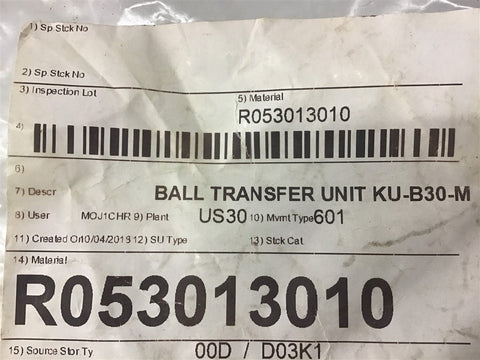 Rexroth R053013010 Ball Transfer Unit New Surplus--Not In Box--10/20/LBCC 113403---SS214--T-16-1-9-B---1.00