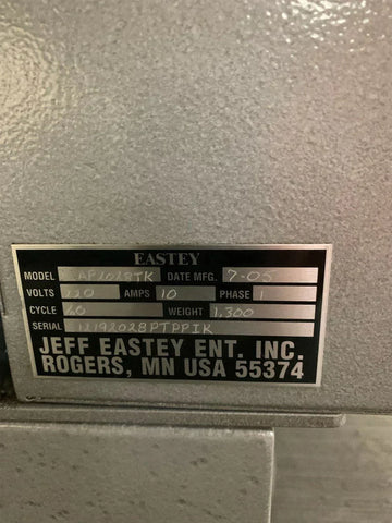 Jeff Eastey ISAP2028TK Sealer 220 Volts 10 Amps single Phase Return Policy Returns accepted within 30 days. Items sold as is cannot be returned, unless description is in error. Buyer pays return freight. Shipping Policy We ship almost all items with 1 business day of cleared payment. We ship USPS and UPS. We can ship on your account. If you will be shipping freight, please be sure to provide all delivery contact information including a phone number. We will need to know if you have a fork lift or dock.