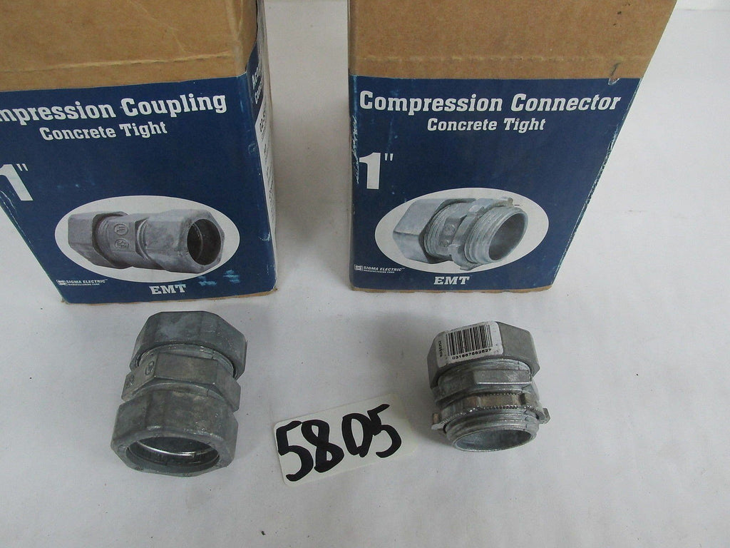 BUYING 10 PIECES OF 1" CONCRETE TIGHT STEEL COMPRESSION CONNECTORS , AND 10 PIECES OF 1" CONCRETE TIGHT STEEL COMPRESSION COUPLINGS , NEW IN FACTORY BOXES. 5805 C-M-6-B