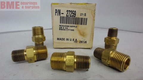 1 Box Of 5--3/8'' To 1/4'' Npt Brass Reducing NippleNEW SURPLUS--FACTORY BOX--NH031529---SS95---H-1-3-5---2.00
