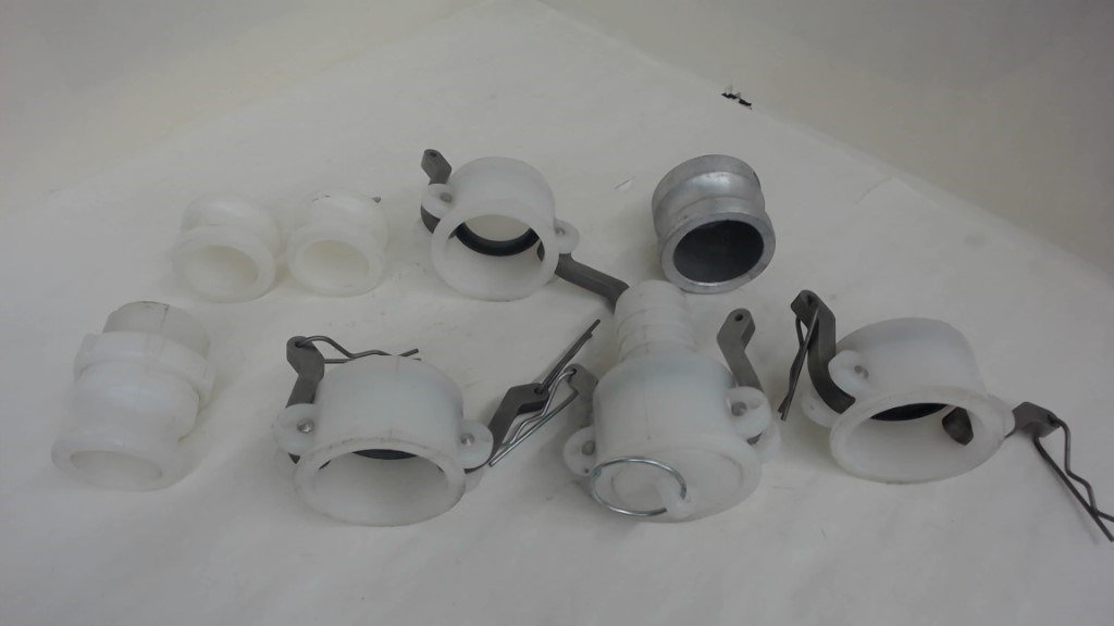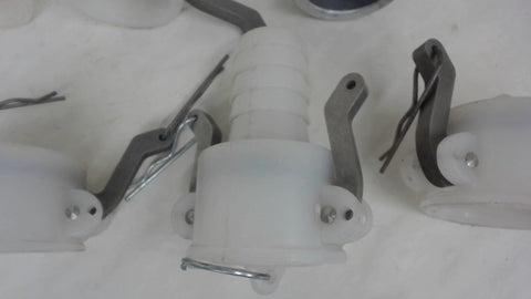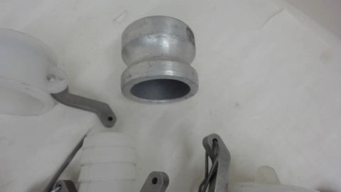 Lot Of 9 1-1/2" Camlock Fittings Adapter, Plugs, Caps, (8) Nylon, (1) Alum 2"