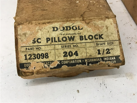 Dodge 123098 Pillow Block Bearing 1/2" Bore Lot of 2 Return Policy Returns accepted within 30 days. Items sold as is cannot be returned, unless description is in error. Buyer pays return freight. Shipping Policy We ship almost all items with 1 business day of cleared payment. We ship USPS and UPS. We can ship on your account. If you will be shipping freight, please be sure to provide all delivery contact information including a phone number. We will need to know if you have a fork lift or dock.