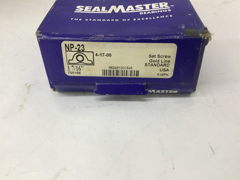 Seal Master NP-23 Gold-Line Pillow Block Bearing 1 7/16" Return Policy Returns accepted within 30 days. Items sold as is cannot be returned, unless description is in error. Buyer pays return freight. Shipping Policy We ship almost all items with 1 business day of cleared payment. We ship USPS and UPS. We can ship on your account. If you will be shipping freight, please be sure to provide all delivery contact information including a phone number. We will need to know if you have a fork lift or dock.