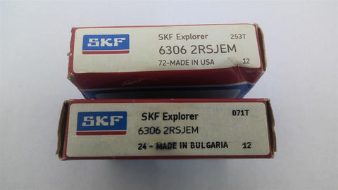 SKF Explorer 6306 2RSJEM Lot Of 2New Surplus--Sealed Factory Box----5/24/SJMCC 152586---SS289-R-14-2-3-B-1---2.00