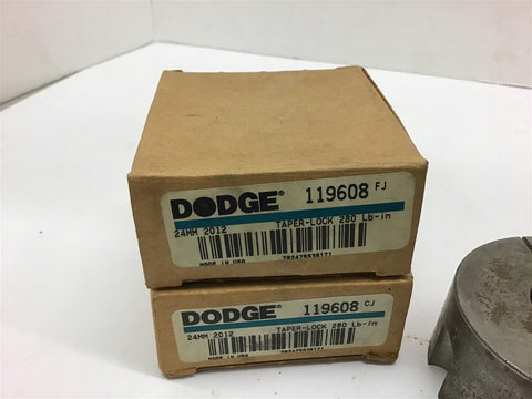 Dodge 119608 2012 Taper-Lock Bushing 24MM Return Policy Returns accepted within 30 days. Items sold as is cannot be returned, unless description is in error. Buyer pays return freight. Shipping Policy We ship almost all items with 1 business day of cleared payment. We ship USPS and UPS. We can ship on your account. If you will be shipping freight, please be sure to provide all delivery contact information including a phone number. We will need to know if you have a fork lift or dock.