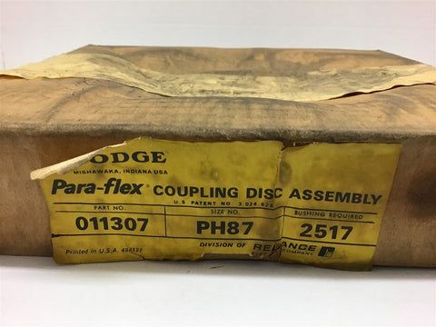 Dodge Paraflex Coupling Disc Assembly 011307 Return Policy Returns accepted within 30 days. Items sold as is cannot be returned, unless description is in error. Buyer pays return freight. Shipping Policy We ship almost all items with 1 business day of cleared payment. We ship USPS and UPS. We can ship on your account. If you will be shipping freight, please be sure to provide all delivery contact information including a phone number. We will need to know if you have a fork lift or dock.