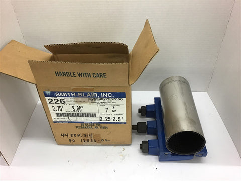 Smith Blair 2260002752700 Coupling 2.70" - 3.00"od 7 1/2" W Return Policy Returns accepted within 30 days. Items sold as is cannot be returned, unless description is in error. Buyer pays return freight. Shipping Policy We ship almost all items with 1 business day of cleared payment. We ship USPS and UPS. We can ship on your account. If you will be shipping freight, please be sure to provide all delivery contact information including a phone number. We will need to know if you have a fork lift or dock.