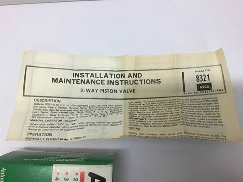 Asco 302391 Solenoid Valve Repair Kit Return Policy Returns accepted within 30 days. Items sold as is cannot be returned, unless description is in error. Buyer pays return freight. Shipping Policy We ship almost all items with 1 business day of cleared payment. We ship USPS and UPS. We can ship on your account. If you will be shipping freight, please be sure to provide all delivery contact information including a phone number. We will need to know if you have a fork lift or dock.
