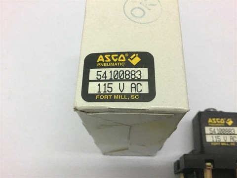 Asco 54100883 Solenoid Valve 115 Vac Return Policy Returns accepted within 30 days. Items sold as is cannot be returned, unless description is in error. Buyer pays return freight. Shipping Policy We ship almost all items with 1 business day of cleared payment. We ship USPS and UPS. We can ship on your account. If you will be shipping freight, please be sure to provide all delivery contact information including a phone number. We will need to know if you have a fork lift or dock.