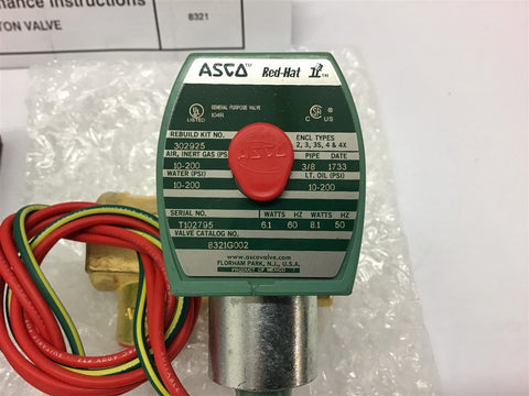 Asco 8321G002 Solenoid Valve 3/8 Pipe 10-200Psi 6.1W 60Hz / 8.1W 50Hz