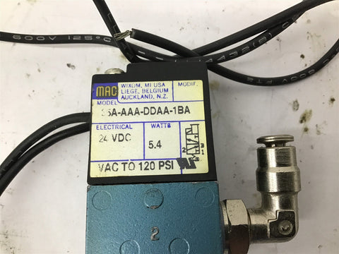 Mac 35A-AAA-DDAA-1BA 24 V DC 5.4 Watts Solenoid Valve Return Policy Returns accepted within 30 days. Items sold as is cannot be returned, unless description is in error. Buyer pays return freight. Shipping Policy We ship almost all items with 1 business day of cleared payment. We ship USPS and UPS. We can ship on your account. If you will be shipping freight, please be sure to provide all delivery contact information including a phone number. We will need to know if you have a fork lift or dock.