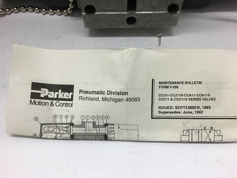 Parker CCJ11S37B01 Solenoid Valve Return Policy Returns accepted within 30 days. Items sold as is cannot be returned, unless description is in error. Buyer pays return freight. Shipping Policy We ship almost all items with 1 business day of cleared payment. We ship USPS and UPS. We can ship on your account. If you will be shipping freight, please be sure to provide all delivery contact information including a phone number. We will need to know if you have a fork lift or dock.