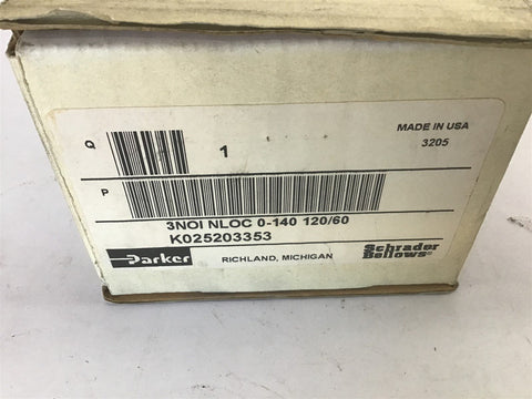 Parker K025203353 Valve 3NOI NLOC 120 Volts 60 HZ 140 PSI Return Policy Returns accepted within 30 days. Items sold as is cannot be returned, unless description is in error. Buyer pays return freight. Shipping Policy We ship almost all items with 1 business day of cleared payment. We ship USPS and UPS. We can ship on your account. If you will be shipping freight, please be sure to provide all delivery contact information including a phone number. We will need to know if you have a fork lift or dock.