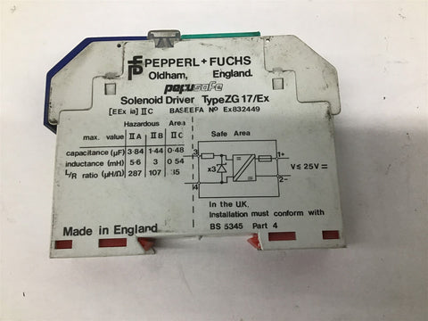Pepperl+Fuchs Solenoid Driver ZG17/Ex Lot Of 3 Return Policy Returns accepted within 30 days. Items sold as is cannot be returned, unless description is in error. Buyer pays return freight. Shipping Policy We ship almost all items with 1 business day of cleared payment. We ship USPS and UPS. We can ship on your account. If you will be shipping freight, please be sure to provide all delivery contact information including a phone number. We will need to know if you have a fork lift or dock.