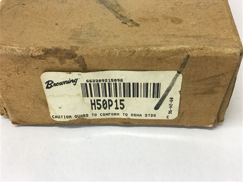 Browning H50P15 Sprocket 50 Chain 15 Tooth uses H bushing Return Policy Returns accepted within 30 days. Items sold as is cannot be returned, unless description is in error. Buyer pays return freight. Shipping Policy We ship almost all items with 1 business day of cleared payment. We ship USPS and UPS. We can ship on your account. If you will be shipping freight, please be sure to provide all delivery contact information including a phone number. We will need to know if you have a fork lift or dock.