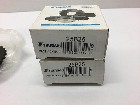 Tsubaki 25B25 Sprocket 25 Teeth Lot of 2 Return Policy Returns accepted within 30 days. Items sold as is cannot be returned, unless description is in error. Buyer pays return freight. Shipping Policy We ship almost all items with 1 business day of cleared payment. We ship USPS and UPS. We can ship on your account. If you will be shipping freight, please be sure to provide all delivery contact information including a phone number. We will need to know if you have a fork lift or dock.