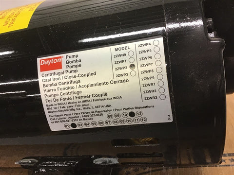 DAYTON 2ZWP2 CENTRIFUGAL PUMP .5 HP 208-230 460 V 3450 RPM 3 PHASE 56J Return Policy Returns accepted within 30 days. Items sold as is cannot be returned, unless description is in error. Buyer pays return freight. Shipping Policy We ship almost all items with 1 business day of cleared payment. We ship USPS and UPS. We can ship on your account. If you will be shipping freight, please be sure to provide all delivery contact information including a phone number. We will need to know if you have a fork lift or dock.