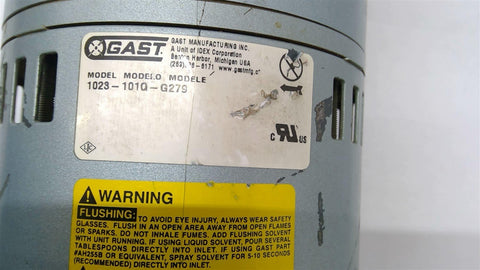 Gast 1023-101Q-G279 Rotary Vane Vacuum Pump With GE 5K49MN4012 3/4 HP AC Motor