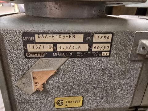Gast DAA-P103-EB Vacuum Pump 115/110V 60HZ Single Phase