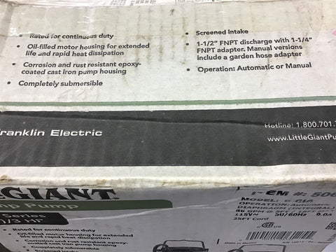 Little Giant 506125 Sump Pump 6 Series 1/3 HP 46 GPM Return Policy Returns accepted within 30 days. Items sold as is cannot be returned, unless description is in error. Buyer pays return freight. Shipping Policy We ship almost all items with 1 business day of cleared payment. We ship USPS and UPS. We can ship on your account. If you will be shipping freight, please be sure to provide all delivery contact information including a phone number. We will need to know if you have a fork lift or dock.