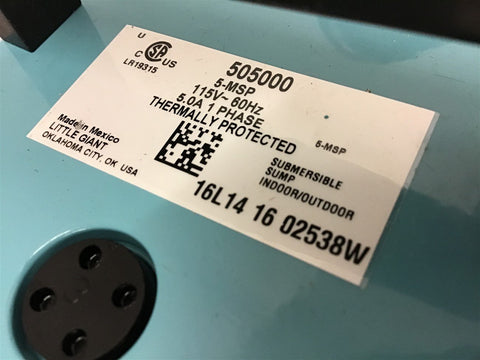 Little Giant Sump Pump 5-MSP 115 Volts 5.0 Amp 10 FT Cord Single Phase Return Policy Returns accepted within 30 days. Items sold as is cannot be returned, unless description is in error. Buyer pays return freight. Shipping Policy We ship almost all items with 1 business day of cleared payment. We ship USPS and UPS. We can ship on your account. If you will be shipping freight, please be sure to provide all delivery contact information including a phone number. We will need to know if you have a fork lift or dock.