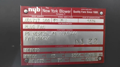 New York Blower Company A00717 100 Mount Used---Good Visual Condition-1/25/BAPCC 161807---SS298 S2-9-1-F-C---55.00
