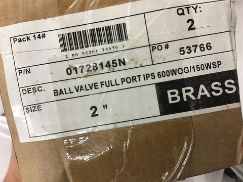 01728145N 2" Brass Ball Valve 600 WOG 150 WSP Valve Return Policy Returns accepted within 30 days. Items sold as is cannot be returned, unless description is in error. Buyer pays return freight. Shipping Policy We ship almost all items with 1 business day of cleared payment. We ship USPS and UPS. We can ship on your account. If you will be shipping freight, please be sure to provide all delivery contact information including a phone number. We will need to know if you have a fork lift or dock.