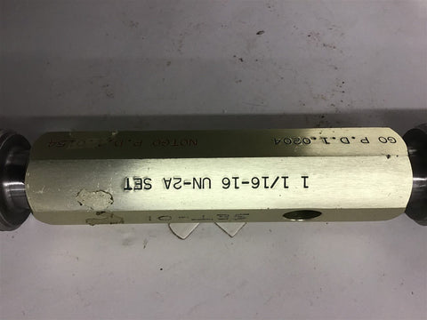 1 1/16-16 UN-2A Set Threaded Gage GO PD 1.0204 NOTGO PD 1.0154 Return Policy Returns accepted within 30 days. Items sold as is cannot be returned, unless description is in error. Buyer pays return freight. Shipping Policy We ship almost all items with 1 business day of cleared payment. We ship USPS and UPS. We can ship on your account. If you will be shipping freight, please be sure to provide all delivery contact information including a phone number. We will need to know if you have a fork lift or dock.