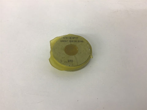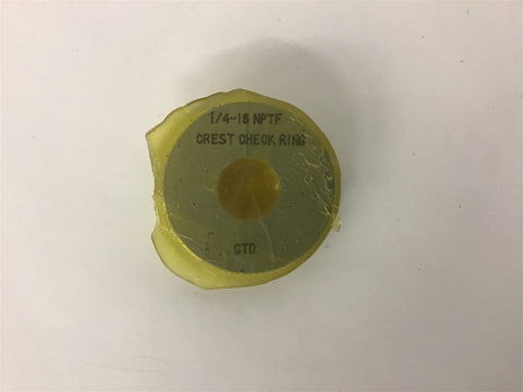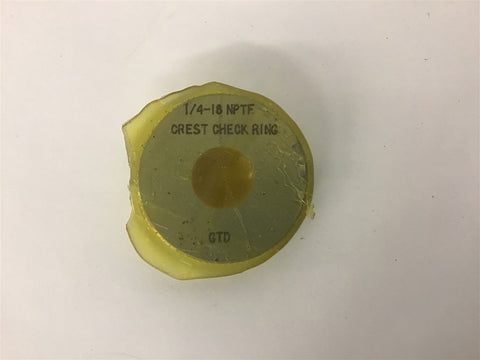1/4-18 NPTF Crest Check Ring Return Policy Returns accepted within 30 days. Items sold as is cannot be returned, unless description is in error. Buyer pays return freight. Shipping Policy We ship almost all items with 1 business day of cleared payment. We ship USPS and UPS. We can ship on your account. If you will be shipping freight, please be sure to provide all delivery contact information including a phone number. We will need to know if you have a fork lift or dock.