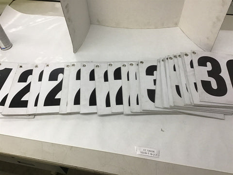 12" x 12" Numbers Lot Of 28 Return Policy Returns accepted within 30 days. Items sold as is cannot be returned, unless description is in error. Buyer pays return freight. Shipping Policy We ship almost all items with 1 business day of cleared payment. We ship USPS and UPS. We can ship on your account. If you will be shipping freight, please be sure to provide all delivery contact information including a phone number. We will need to know if you have a fork lift or dock.