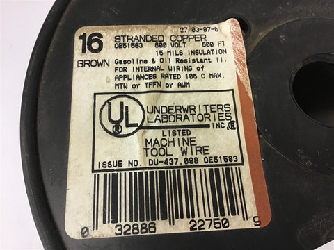 16 Stranded copper 600 volt Brown Machine Tool Wire 500 FT Return Policy Returns accepted within 30 days. Items sold as is cannot be returned, unless description is in error. Buyer pays return freight. Shipping Policy We ship almost all items with 1 business day of cleared payment. We ship USPS and UPS. We can ship on your account. If you will be shipping freight, please be sure to provide all delivery contact information including a phone number. We will need to know if you have a fork lift or dock.