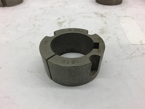 1610 Bushing 1-1/2" bore Lot of 4 Return Policy Returns accepted within 30 days. Items sold as is cannot be returned, unless description is in error. Buyer pays return freight. Shipping Policy We ship almost all items with 1 business day of cleared payment. We ship USPS and UPS. We can ship on your account. If you will be shipping freight, please be sure to provide all delivery contact information including a phone number. We will need to know if you have a fork lift or dock.
