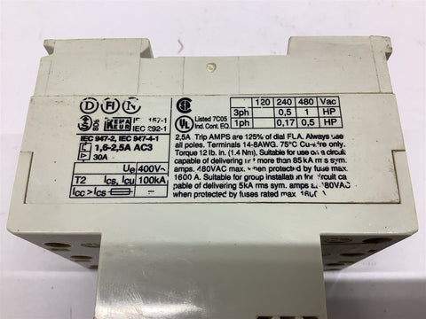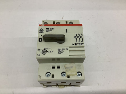 ABB MS 325 Manual Motor Starter 1.6-2.5 Amp Return Policy Returns accepted within 30 days. Items sold as is cannot be returned, unless description is in error. Buyer pays return freight. Shipping Policy We ship almost all items with 1 business day of cleared payment. We ship USPS and UPS. We can ship on your account. If you will be shipping freight, please be sure to provide all delivery contact information including a phone number. We will need to know if you have a fork lift or dock.