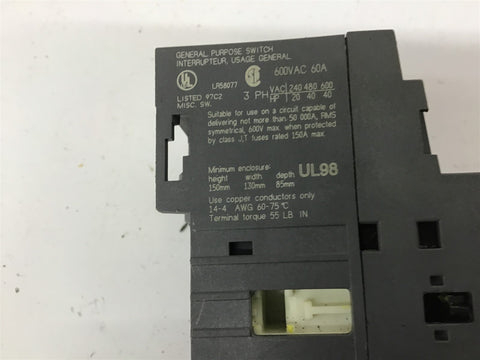 ABB --- OT60E3 --- 600V 60A --- Used---Good Visual Condition---12/21/WW