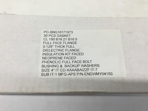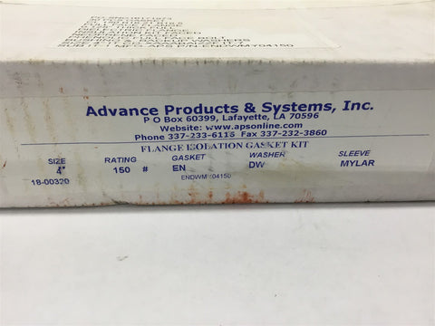 Advance Products & Systems Flange Isolation Gasket EN 4" Kit Return Policy Returns accepted within 30 days. Items sold as is cannot be returned, unless description is in error. Buyer pays return freight. Shipping Policy We ship almost all items with 1 business day of cleared payment. We ship USPS and UPS. We can ship on your account. If you will be shipping freight, please be sure to provide all delivery contact information including a phone number. We will need to know if you have a fork lift or dock.