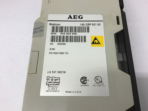 AEG 140 CRP 93100 Modicon Processor Module Return Policy Returns accepted within 30 days. Items sold as is cannot be returned, unless description is in error. Buyer pays return freight. Shipping Policy We ship almost all items with 1 business day of cleared payment. We ship USPS and UPS. We can ship on your account. If you will be shipping freight, please be sure to provide all delivery contact information including a phone number. We will need to know if you have a fork lift or dock.