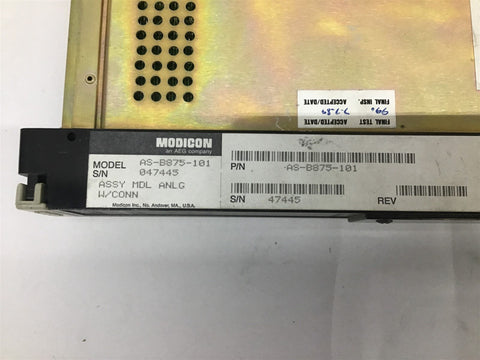 AEG Modicon AS-B875-101 Analog Input Return Policy Returns accepted within 30 days. Items sold as is cannot be returned, unless description is in error. Buyer pays return freight. Shipping Policy We ship almost all items with 1 business day of cleared payment. We ship USPS and UPS. We can ship on your account. If you will be shipping freight, please be sure to provide all delivery contact information including a phone number. We will need to know if you have a fork lift or dock.
