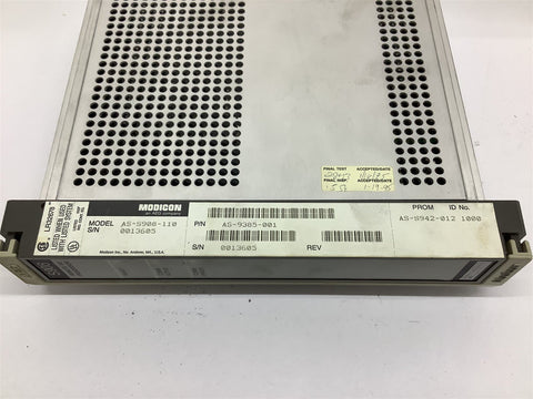 AEG Modicon AS-S908-110 Remote I/O Processor Return Policy Returns accepted within 30 days. Items sold as is cannot be returned, unless description is in error. Buyer pays return freight. Shipping Policy We ship almost all items with 1 business day of cleared payment. We ship USPS and UPS. We can ship on your account. If you will be shipping freight, please be sure to provide all delivery contact information including a phone number. We will need to know if you have a fork lift or dock.