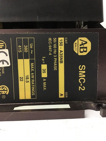 Allen-Bradley 150-A35NB SMC-2 Motor controller 25 HP 460 volts Return Policy Returns accepted within 30 days. Items sold as is cannot be returned, unless description is in error. Buyer pays return freight. Shipping Policy We ship almost all items with 1 business day of cleared payment. We ship USPS and UPS. We can ship on your account. If you will be shipping freight, please be sure to provide all delivery contact information including a phone number. We will need to know if you have a fork lift or dock.
