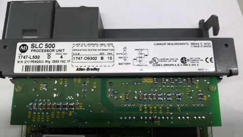 Allen-Bradley 1746-A13 13 Slot Rack With 1747-L532 Processor Unit Return Policy Returns accepted within 30 days. Items sold as is cannot be returned, unless description is in error. Buyer pays return freight. Shipping Policy We ship almost all items with 1 business day of cleared payment. We ship USPS and UPS. We can ship on your account. If you will be shipping freight, please be sure to provide all delivery contact information including a phone number. We will need to know if you have a fork lift or dock.