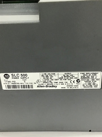 Allen-Bradley 1746-P2 SLC500 Power Supply/ 10-Slot Chassis Return Policy Returns accepted within 30 days. Items sold as is cannot be returned, unless description is in error. Buyer pays return freight. Shipping Policy We ship almost all items with 1 business day of cleared payment. We ship USPS and UPS. We can ship on your account. If you will be shipping freight, please be sure to provide all delivery contact information including a phone number. We will need to know if you have a fork lift or dock.