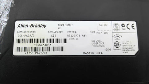 Allen Bradley 1756-A4 B 4 Slot Chassis with 1756-PA72/C Power Supply