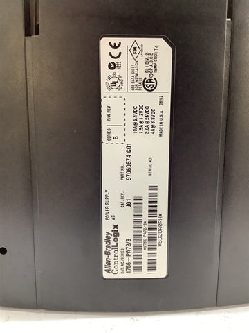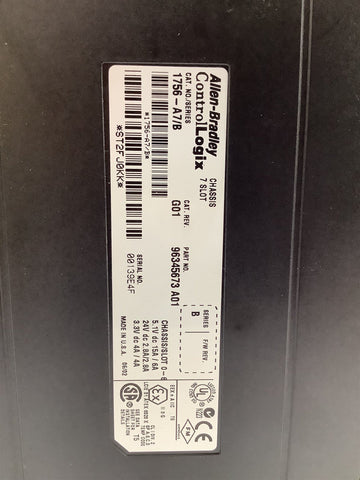 Allen-Bradley 1756-A7/B 7-Slot chassis w/ 1756-PA72/B Power Supply Return Policy Returns accepted within 30 days. Items sold as is cannot be returned, unless description is in error. Buyer pays return freight. Shipping Policy We ship almost all items with 1 business day of cleared payment. We ship USPS and UPS. We can ship on your account. If you will be shipping freight, please be sure to provide all delivery contact information including a phone number. We will need to know if you have a fork lift or dock.