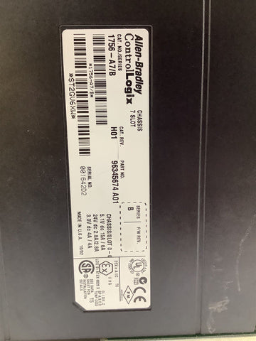 Allen-Bradley 1756-A7/B Control Logix 7 Slot Chassis with power Supply Return Policy Returns accepted within 30 days. Items sold as is cannot be returned, unless description is in error. Buyer pays return freight. Shipping Policy We ship almost all items with 1 business day of cleared payment. We ship USPS and UPS. We can ship on your account. If you will be shipping freight, please be sure to provide all delivery contact information including a phone number. We will need to know if you have a fork lift or dock.