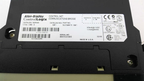 Allen Bradley 1756-CNB Ser D Control Net Communication Bridge Return Policy Returns accepted within 30 days. Items sold as is cannot be returned, unless description is in error. Buyer pays return freight. Shipping Policy We ship almost all items with 1 business day of cleared payment. We ship USPS and UPS. We can ship on your account. If you will be shipping freight, please be sure to provide all delivery contact information including a phone number. We will need to know if you have a fork lift or dock.