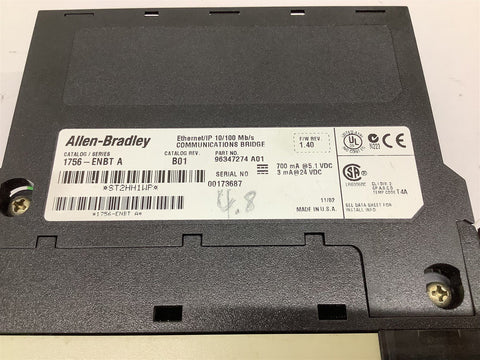 Allen-Bradley 1756-ENBT A Communications Bridge Return Policy Returns accepted within 30 days. Items sold as is cannot be returned, unless description is in error. Buyer pays return freight. Shipping Policy We ship almost all items with 1 business day of cleared payment. We ship USPS and UPS. We can ship on your account. If you will be shipping freight, please be sure to provide all delivery contact information including a phone number. We will need to know if you have a fork lift or dock.