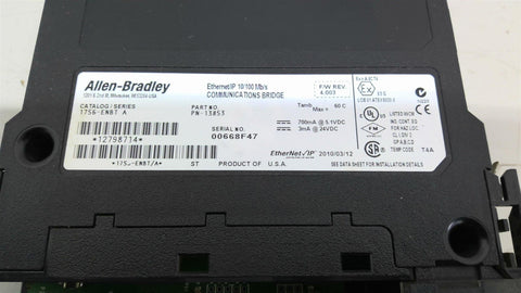 Allen-Bradley 1756-ENBT Ethernet PLC Used---Selling as Pictured----11/24/RV CC 157520---SS234 T-23/24-1-4---3.00